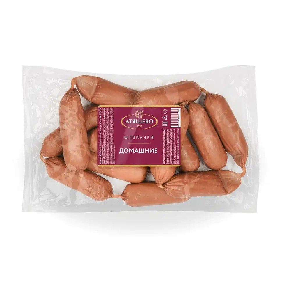 Состав: филе грудки цыплят-бройлеров, свинина, вода питьевая, шпик, мясо цыплят-бройлеров механической обвалки, белковый стабилизатор (шкурка свиная, вода питьевая), крахмал картофельный, крахмал пшеничный, посолочно-нитритная смесь (соль, фиксатор окраски (нитрит натрия)), пряности (имбирь, мускатный орех), чеснок, антиокислитель (изоаскорбат натрия), регуляторы кислотности (пирофосфаты, ацетаты натрия), краситель (кармины).