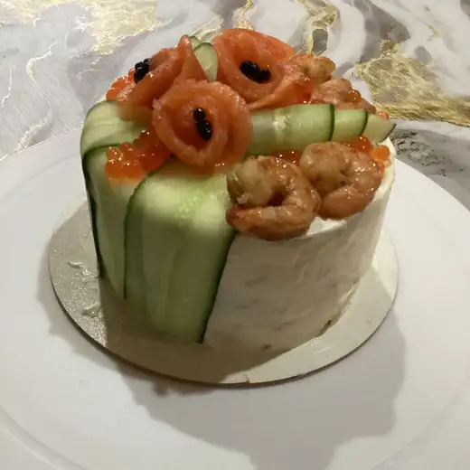 Изумрудный цвет шпината оттеняется белоснежным сливочным сыром и яркими вкраплениями красной рыбы. Нежный яично-шпинатный бисквит, сливочный сыр с лёгкой лимонной кислинкой и солёный насыщенный лосось прекрасно сочетаются между собой.