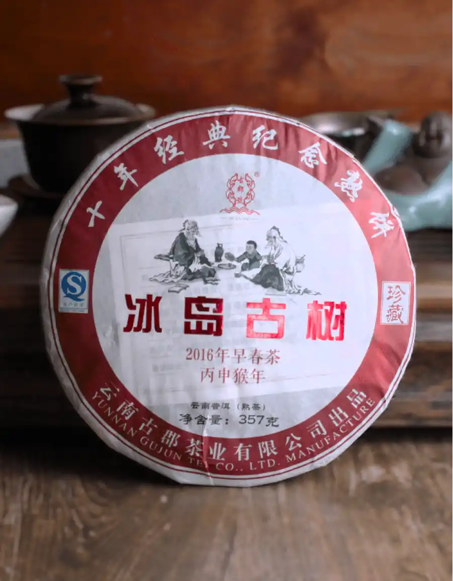 В переводе с китайского — «Старое Дерево с Холодного Острова». Блинчик средней прессовки с большим содержанием почек. Сырьё 2016 года. Во вкусе готового настоя прослеживаются ноты мускатного ореха, миндаля и фиников. Послевкусие продолжительное, с лёгкой горечью хвойного дерева, минеральности и сливочных нот. Чаёк рабочий, бодрящий и без перегибов. Придаёт уму чистоту, повышает концентрацию. Достаточно легко заваривается в нефть.