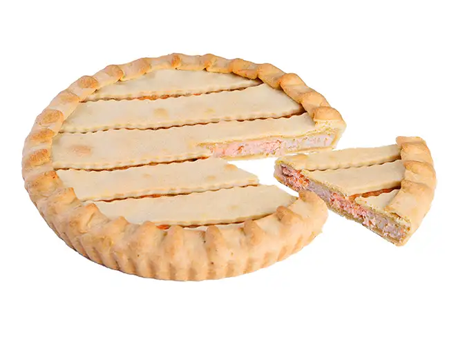 С красной рыбой и рисом Обязательно попробуйте этот пирог! В нем сила и целая история великого народа! Состав: начинка (рыба семейства лососевых, рис, лук репчатый, масло сливочное), тесто (масло сливочное, мука пшеничная, яйцо куриное, сахар белый, соль, уксус, гидрокарбонад натрия Е500ii (сода пищевая)). Срок годности: 48 ч при температуре 4±2°C. Пищевая ценность продукта на 100 г: Калорийность — 260 ккал Белки — 8,0 г Жиры — 11,0 г Углеводы — 32,0 г Рекомендуем резать на кусочки: по весу 500 г на 4 кусочка по весу 850 г на 8 кусочка Уточнения: Вес 500 г — Ø пирога ≈ 18 сантиметров Вес 850 г — Ø пирога ≈ 24 сантиметров Внешний вид изделий может отличаться от фотографий, так как каждый пирог — это ручная работа