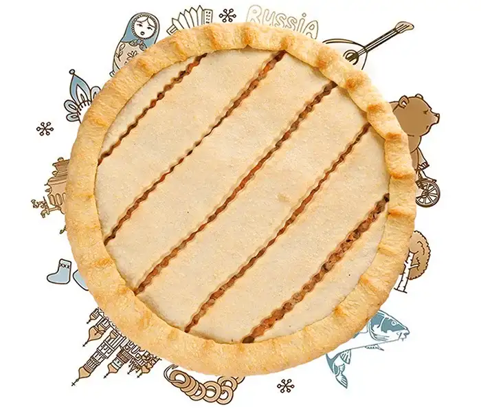 С красной рыбой и рисом Обязательно попробуйте этот пирог! В нем сила и целая история великого народа! Состав: начинка (рыба семейства лососевых, рис, лук репчатый, масло сливочное), тесто (масло сливочное, мука пшеничная, яйцо куриное, сахар белый, соль, уксус, гидрокарбонад натрия Е500ii (сода пищевая)). Срок годности: 48 ч при температуре 4±2°C. Пищевая ценность продукта на 100 г: Калорийность — 260 ккал Белки — 8,0 г Жиры — 11,0 г Углеводы — 32,0 г Рекомендуем резать на кусочки: по весу 500 г на 4 кусочка по весу 850 г на 8 кусочка Уточнения: Вес 500 г — Ø пирога ≈ 18 сантиметров Вес 850 г — Ø пирога ≈ 24 сантиметров Внешний вид изделий может отличаться от фотографий, так как каждый пирог — это ручная работа