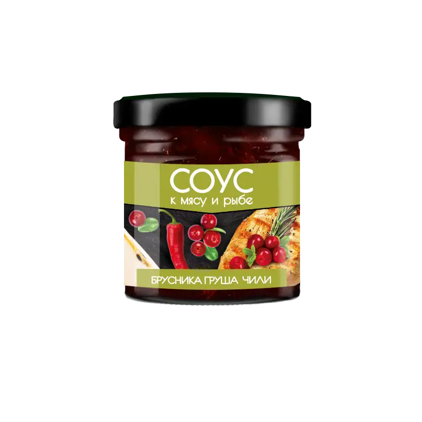 Состав: Брусника, вода, пюре груши концентрированное, кусочки груши сушенные, сахар, крахмал кукурузный, соль, специи ( паприка, перец «Чили» кусочки, перец «Чили» молотый), регулятор кислотности- лимонная кислота, консерванты — бензоат натрия, сорбит калия.
