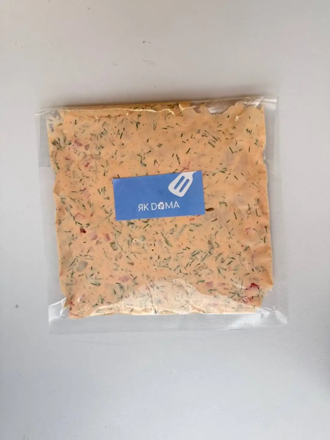 Состав: Майонез, укроп свежий, перец, огурец корнишон маринованный, кетчуп томатный, соус табаско.