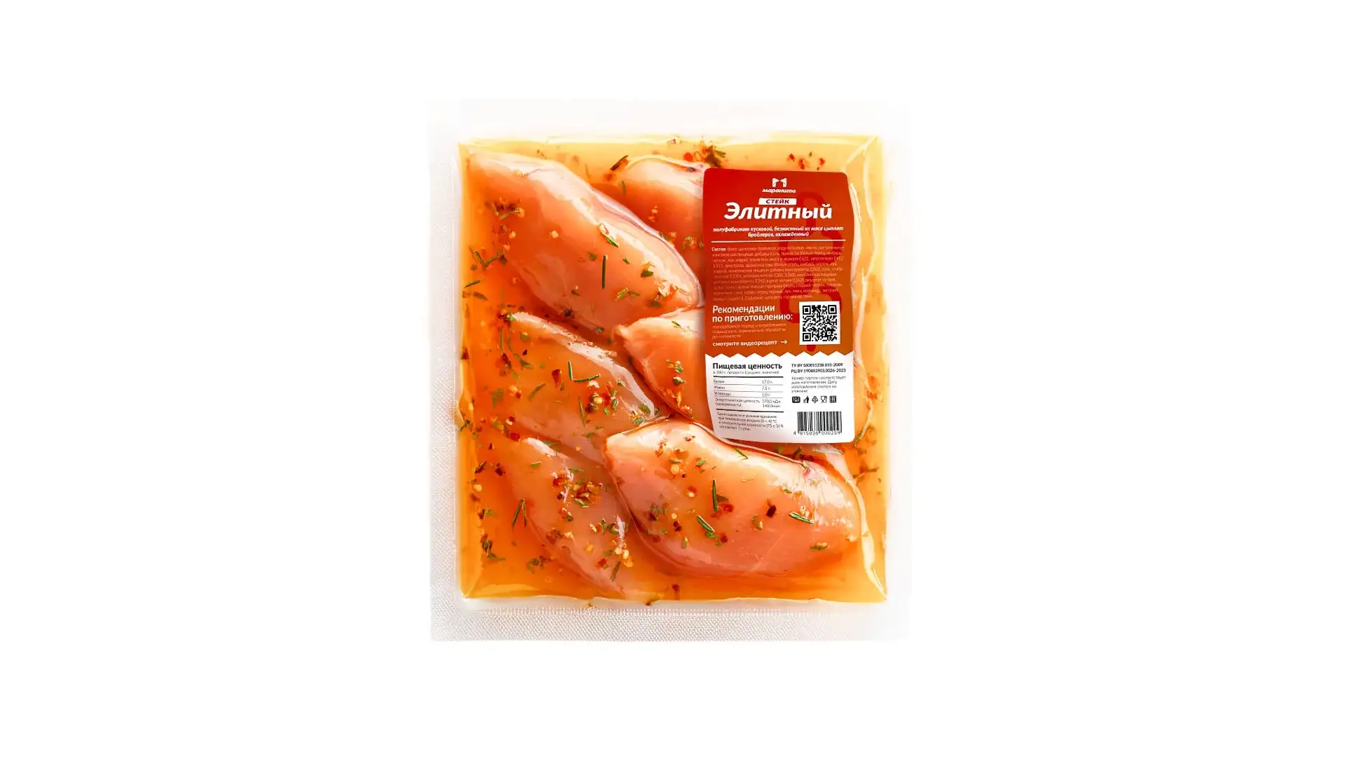 Состав: филе цыпленка-бройлера, вода питьевая, масло растительное, комплексная пищевая добавка (соль, пряности (белый перец, имбирь, чеснок, лук, карри), усилитель вкуса и аромата Е621, загустители Е412, Е415, декстроза, ароматизаторы (белый перец, имбирь, чеснок, лук, карри)), комплексная пищевая добавка (консервант Е262i, соль, стабилизатор Е331ii, антиокислители: Е301, Е300), комплексная пищевая добавка (консерванты Е262i ацетат натрия / Е262ii диацетат натрия, соль), пряно-ароматическая приправа (перец сладкий, чеснок, морковь, горчичное семя, карри, перец черный, лук, тмин, кориандр, экстракт перца сладкого). Содержит аллерген: горчичное семя. Характеристики: Жиры — 7,5 г Белки — 17 г Углеводы — 1 г Срок годности — 30 суток Энергетическая ценность (калорийность) — 570,0 кДж/140,0 ккал