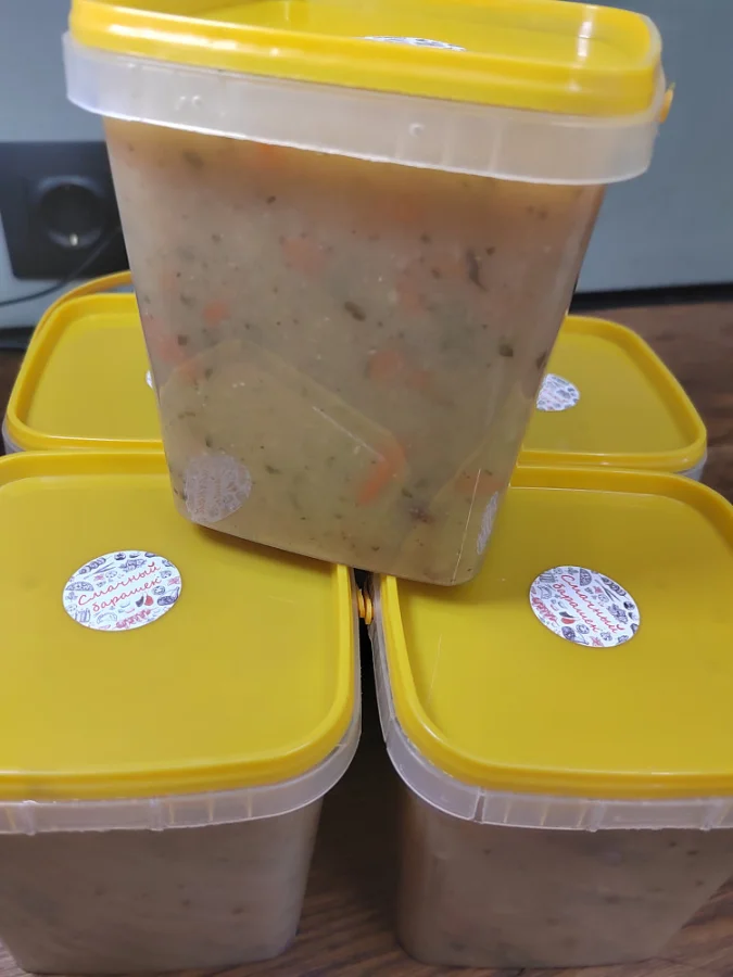 Гороховый суп с копчеными рёбрышками ягненка, 1000 грамм Ингредиенты: Костный бульон Горох Лук Морковь Варено-копченые рёбрышки ягненка Соль