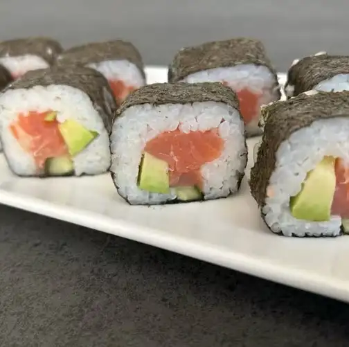 Вес 10 шт. — 410 г На выбор: — Зеленый дракон (рис, нори, авокадо, сыр, креветка в темпуре) — Филадельфия классика (рис, нори, сыр, огурец, лосось) — Калифорния с кунжутом (рис, нори, сыр, огурец, кунжут, снежный краб) — Чиз-ролл (рис, нори, сыр, огурец, копченый лосось, плавленый сыр) — Авокадо-креветка в темпера (авокадо, креветка в темпуре, сыр, рис, кунжут, нори) — Филадельфия в темпуре — Самурай — Нори, рис, форель, авокадо — Ролл в темпуре со снежным крабом