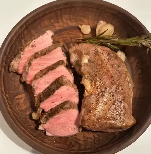 Су-вид бастурма из свинины — нежность, которая тает во рту! Мы готовим её 4 часа при температуре 64°C — именно столько нужно, чтобы мясо стало сочным, мягким и ароматным. Добавляем только лучшее: свежий розмарин, чеснок, немного соли и перца — всё для того, чтобы вкус был насыщенным, но натуральным. Идеально для сэндвичей, закусок, или просто так — с бокалом красного! Продаем в готовом, но замороженном виде в вакуумной упаковке! Только разморозить и по 1 мин обжарить на сливочном масле!