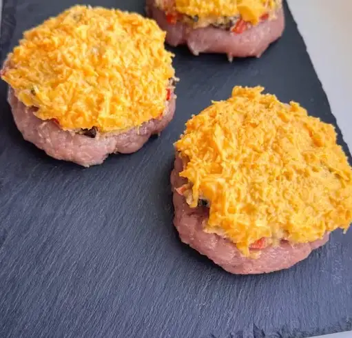 Свинина, чернослив, болгарский перец, сыр, майонез, яйцо