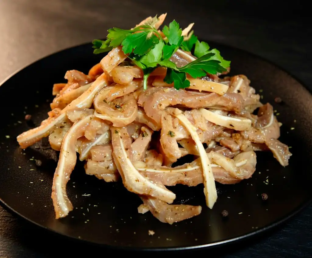 Свиные уши маринованные — деликатесная закуска, приготовленная из отборных свиных ушей, маринованных по традиционной рецептуре. Продукт готов к употреблению, с ярким вкусом и хрустящей текстурой, идеально подходит для закусок и салатов.