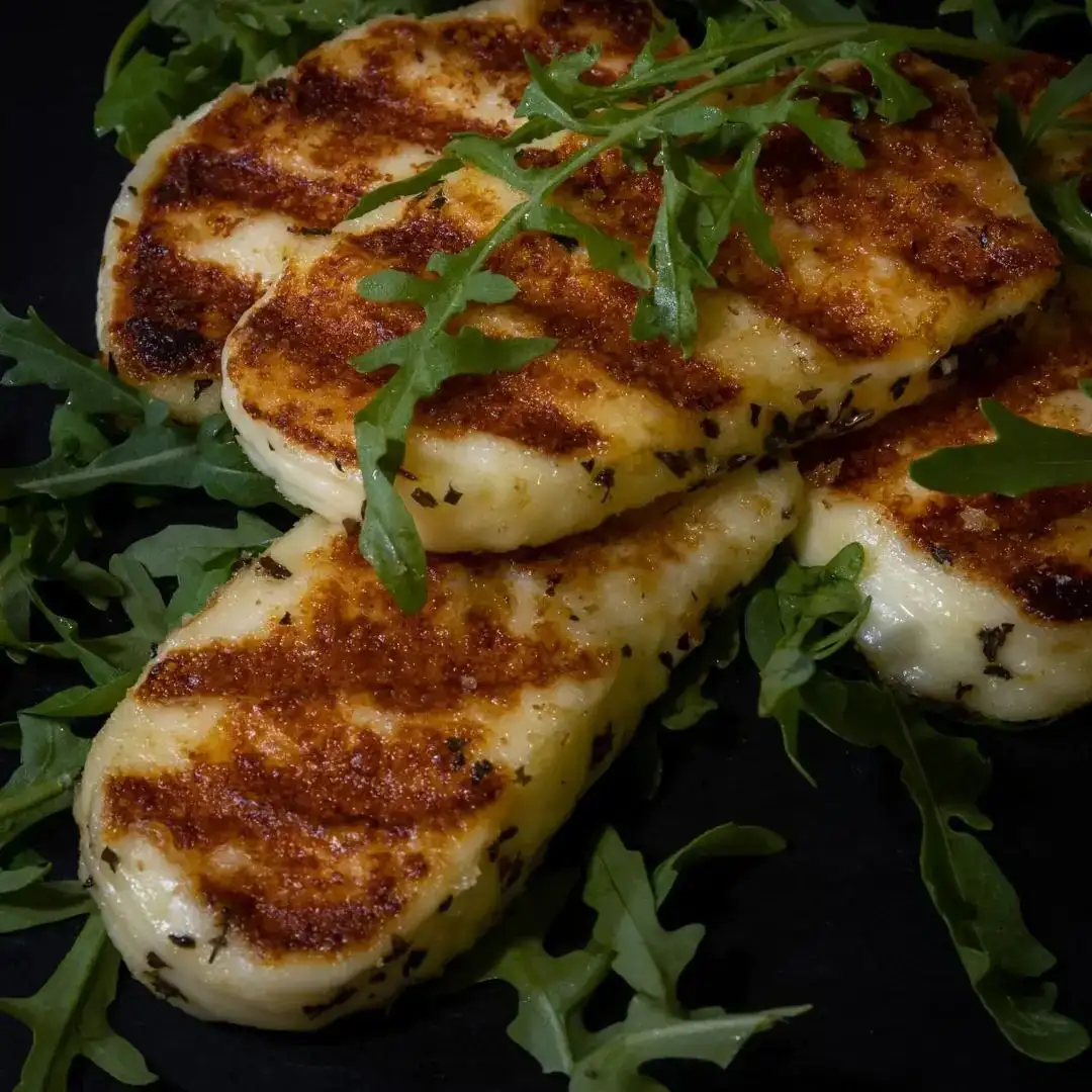 Халлуми — вкусный кипрский сыр. Он уникален тем, что его можно жарить на гриле или готовить на сковороде, при этом он не потеряет своей формы. Халлуми имеет характерный солоноватый вкус и при этом прекрасно сочетается с фруктами. Один из самых популярных способов насладиться халлуми обжарить его перед употреблением. Халлуми можно есть на завтрак с яйцами или фруктами, такими как киви или виноград. Также он станет отличным дополнением к салатам, бутербродам и рулетам. КБЖУ на 100 г: 316/24.5/27 Состав: молоко, закваска Условия хранения: 5 дней при температуре 3-5°С Фасовка: нарезка от 250 г
