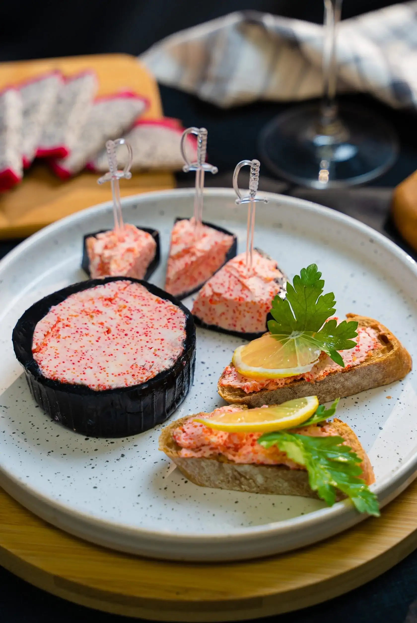 Оболочкой для Segreto (Секрет) служит итальянский свежий сыр pasta filata, a мягкая начинка изготавливается на основе крем-сыра со сливками с добавлением различных продуктов. КБЖУ на 100 г без учета добавок: 209.5/12.5/17.3/12.6 Состав: молоко, закваска, икра летучей рыбы, чернила каракатицы Условия хранения: до 5 дней при температуре 3-5°С