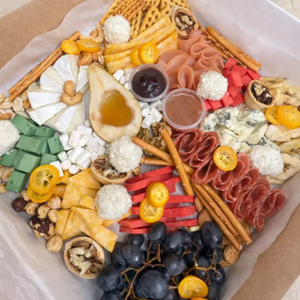Изысканный набор для тех, кто ценит эстетику, баланс и удовольствие в каждой детали. Этот сет станет украшением любого стола — для праздника, свидания, встречи с друзьями или стильного комплимента близкому человеку. Можно дополнять бокс разными сырами, а также фрукты в зависимости от сезона могут меняться.