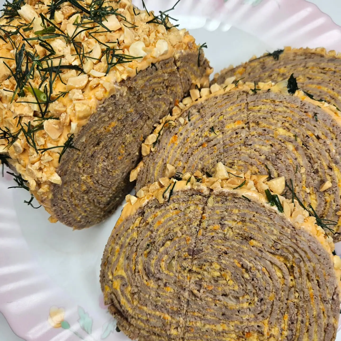 Ассортимент: — Свекольный рулет с сельдью, 600 г — Рулет из лаваша с форелью, 500 г — Печеночный рулет, 700 г — Рулет «Царский», 500 г