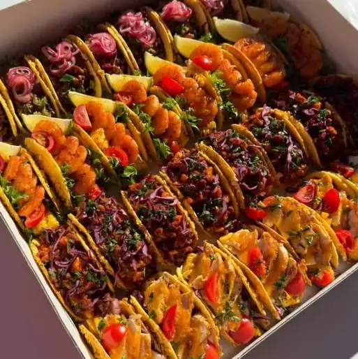 — такос с пряной говядиной, 8 шт. — такос с креветками, 8 шт. — такос с говядиной ориджинал, 8 шт. — такос с курочкой, 8 шт.