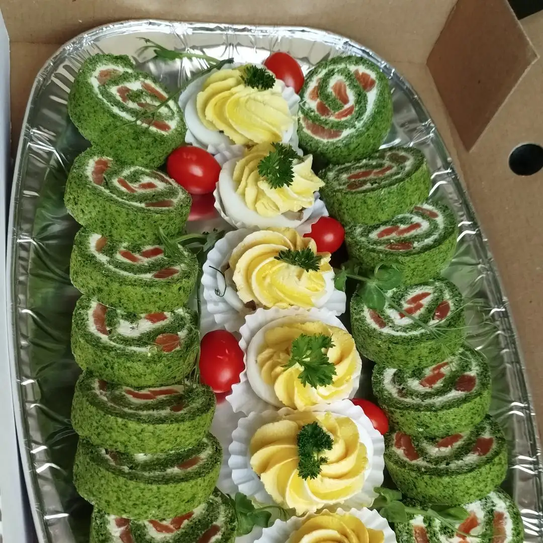 Шпинатный рулет 15 кусочков Яйцо фаршированное грибами 7 шт