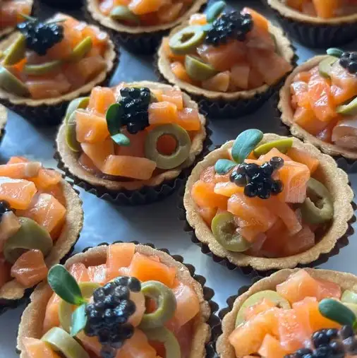 Тарталетка с форелью слабосоленой и оливками Заказ от 10 штучек.