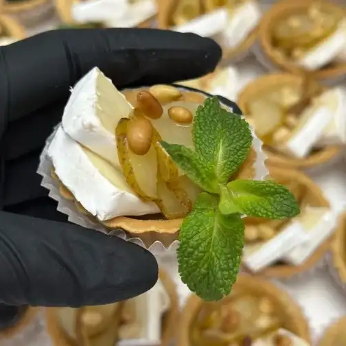 Тарталетка с сыром бри, карамелизированной грушей и орехами Заказ от 10 штучек.
