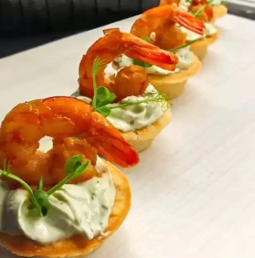 Состав тарталетки с креветками: — Креветки — Мусс из базилика