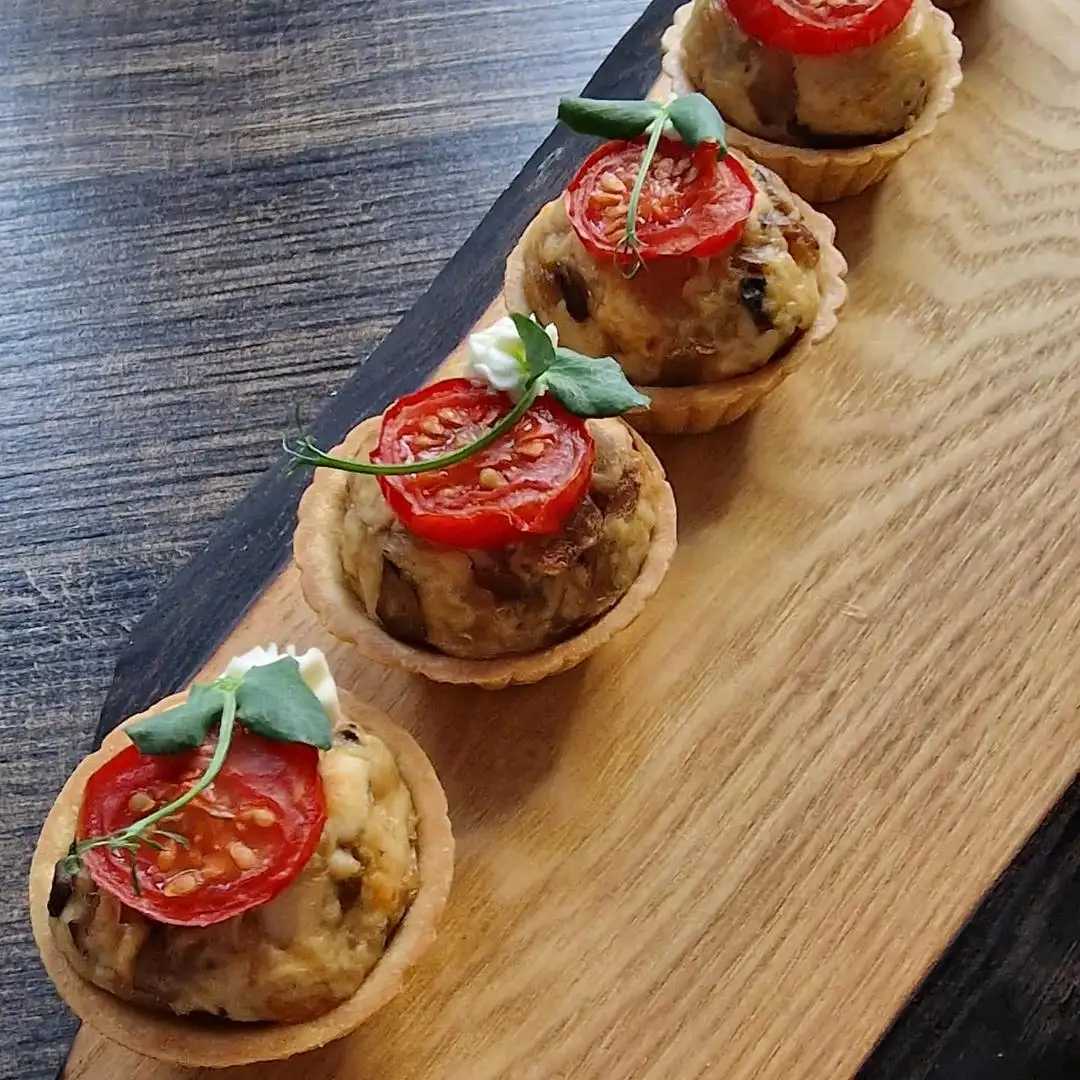 10 шт. — 350 г Состав: тарталетки, шампиньоны, лук, куриное филе, майонез, творожный сыр, твёрдый сыр, помидоры черри. С грибами, 10 шт. — 38 BYN