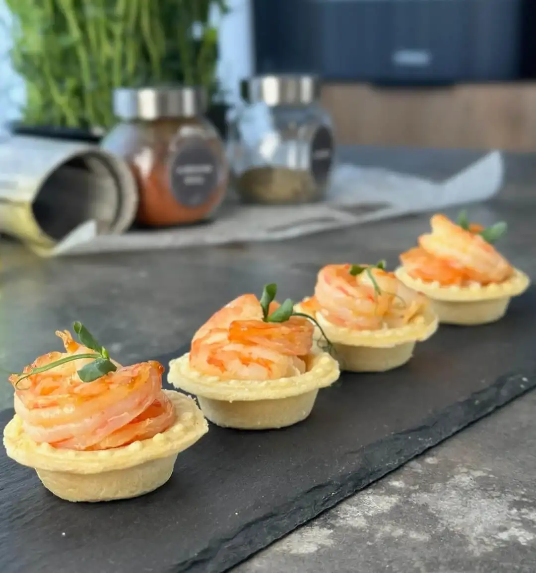 Тарталетка, творожный сыр, креветка