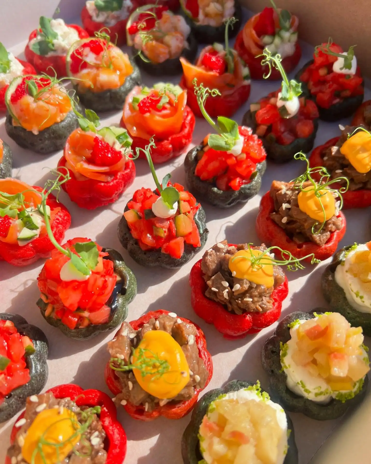 На выбор: — с говядиной — с беконом — с муссом том-ям и креветкой — с креветкой и лососем — с дорблю, яблоком и медом — с обоженным лососем Заказ от 10 шт.