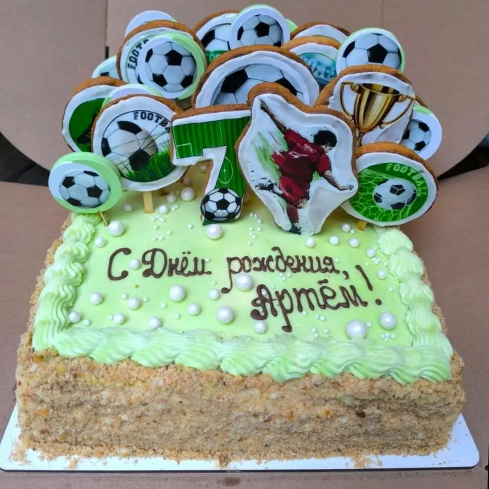 Нежный тортик «Молочная девочка» со сливочно-сырным кремом. Украшен медовыми пряниками и леденцами из изомальта.