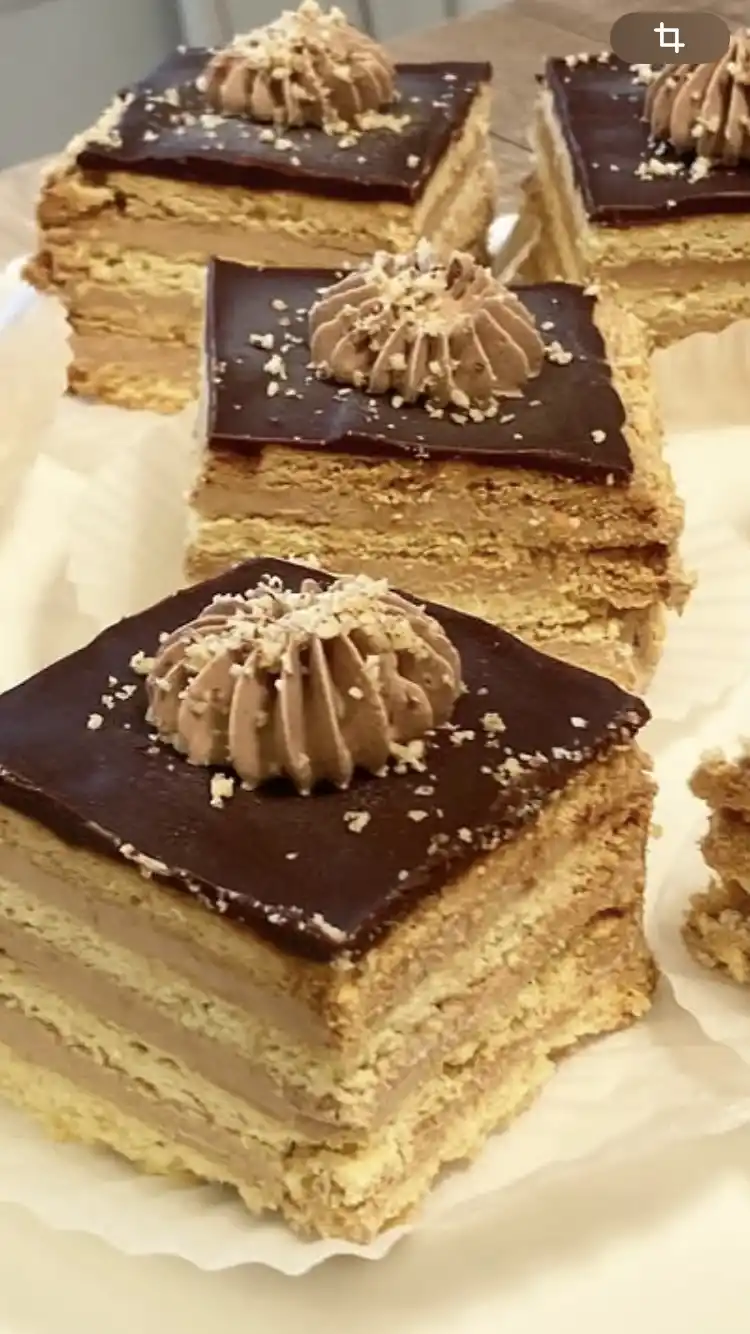 Песочная хрустящая основа Шоколадный сливочный крем Шоколадная глазурь