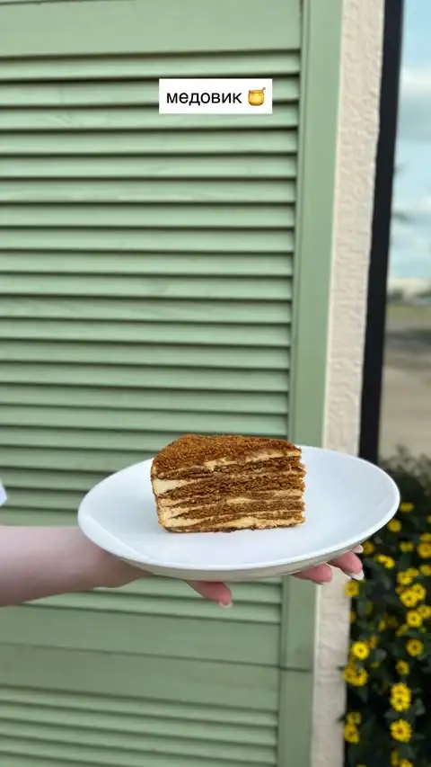 Мягкие, пряные коржи с выраженным медовым ароматом и нежным кремом. Прекрасно дополняет чай или тёплые молочные напитки. Главная особенность — долгое пропитка, благодаря которой коржи становятся особенно нежными и сочными.