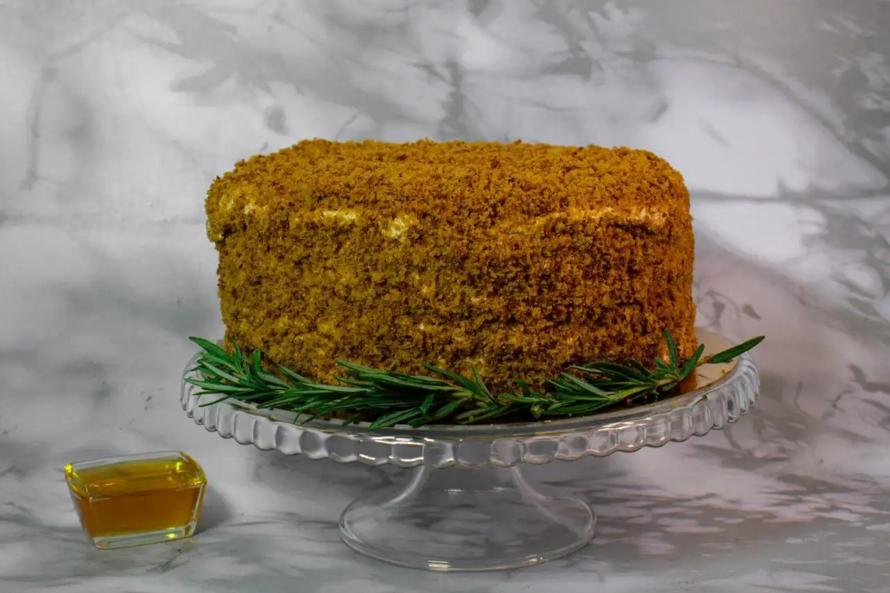 Медовые коржи, пропитанные сметанным кремом с добавлением мёда.
