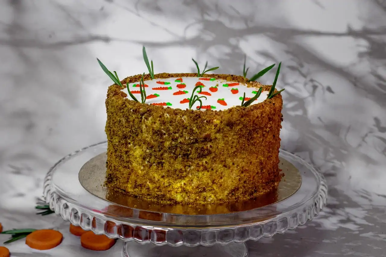 Морковные бисквиты с добавлением карамелизированного грецкого ореха и солёной карамели, смешанной с этим же орехом.