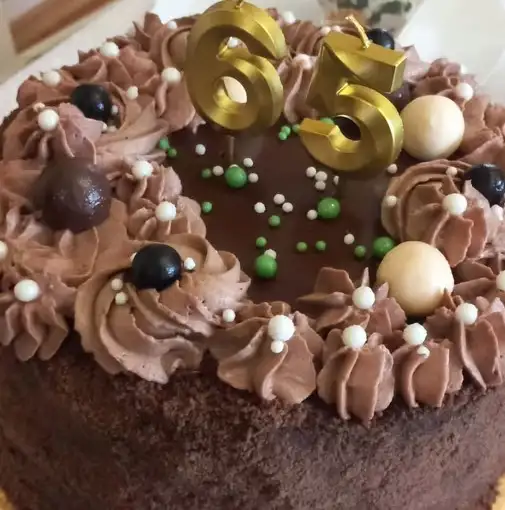 Шоколадный бисквит, пропитанный сливками. Два вида крема: сливочный со сгущенкой и воздушный кремчиз на сливках с какао. Вехний слой — шоколадная глазурь. Декор может отличатся и выполняется по вашему запросу.