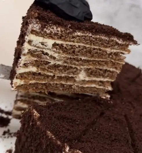 Шоколадные коржи с кремом на основе творожного сыра