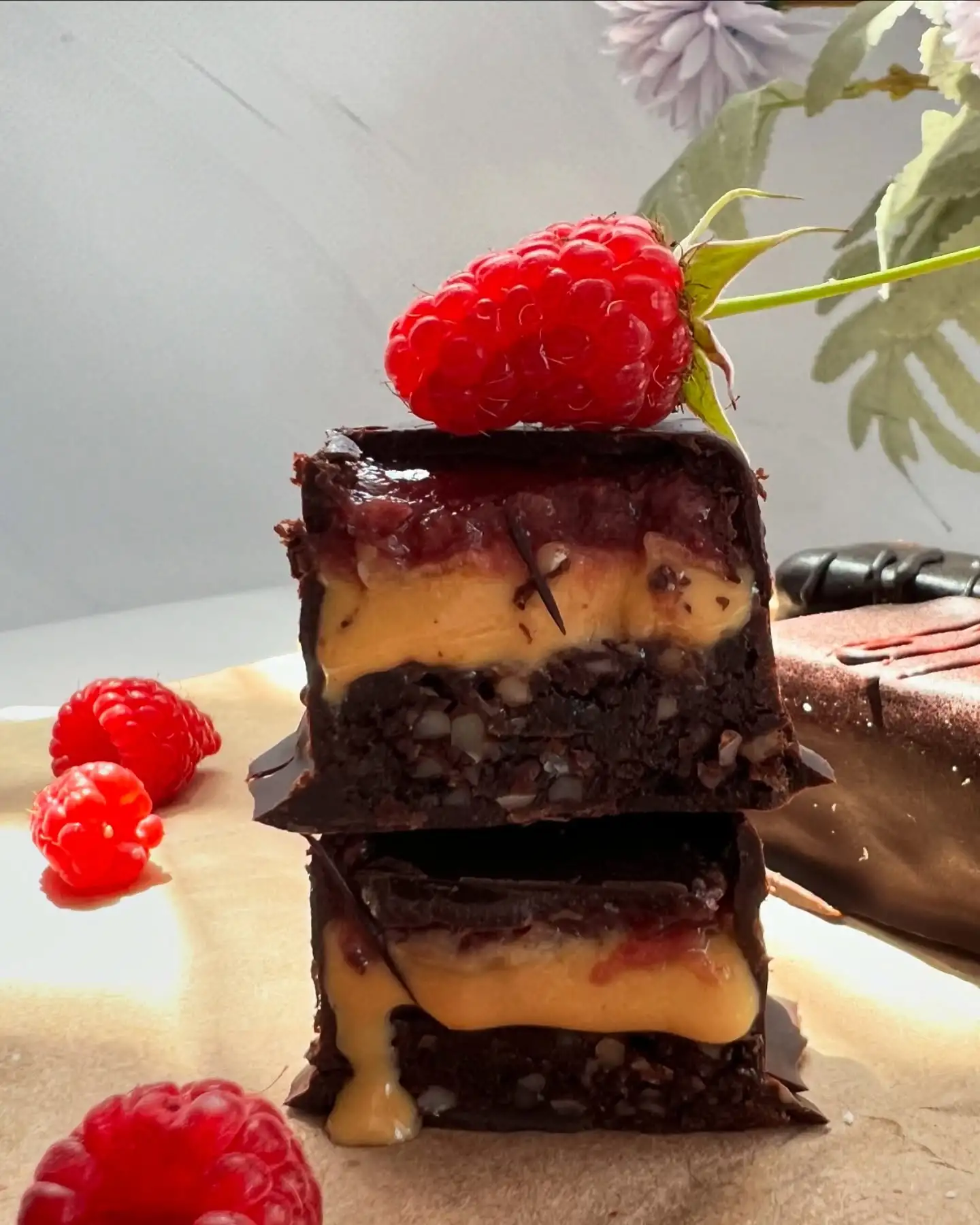 Состав: — Какао тертое — Какао масло — Сироп топинамбура — Кокосовое масло — Финики — Молотый миндаль — Арахисовая паста без сахара — Малина