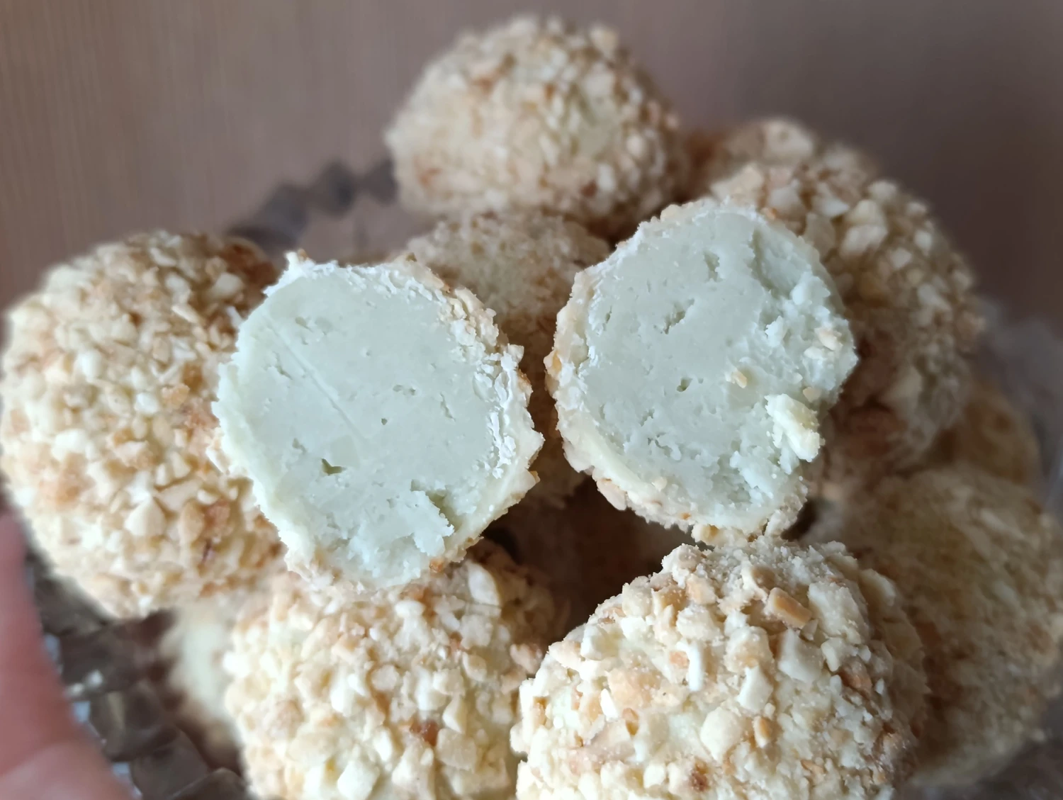 Трюфель "С голубым сыром" - смелый десерт для искушенных гурманов! Откройте для себя неожиданное сочетание: пикантность голубого сыра, нежность белого шоколада и благородство виски. Состав: сливки 33%, сироп глюкозы, белый шоколад Zephyr от Cacao Barry, какао-масло, сыр с голубой плесенью, виски, ванильная паста Guzman, обсыпка кешью Готовы к гастрономическому эксперименту?😉