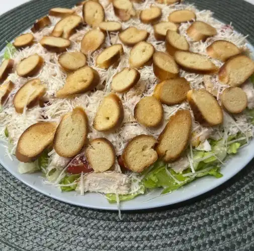 Салат «Цезарь» — это сочетание свежести, насыщенного вкуса и легкости! В моем «Цезаре» вы найдете: • Хрустящие листья айсберга • Нежные куриные грудки, обжаренные до золотистой корочки • Ароматные гренки, приготовленные с любовью • Пармезан, добавляющий пикантности • Неповторимая заправка для салата, которая сделает ваш салат незабываемым! Не упустите возможность насладиться этим кулинарным шедевром!