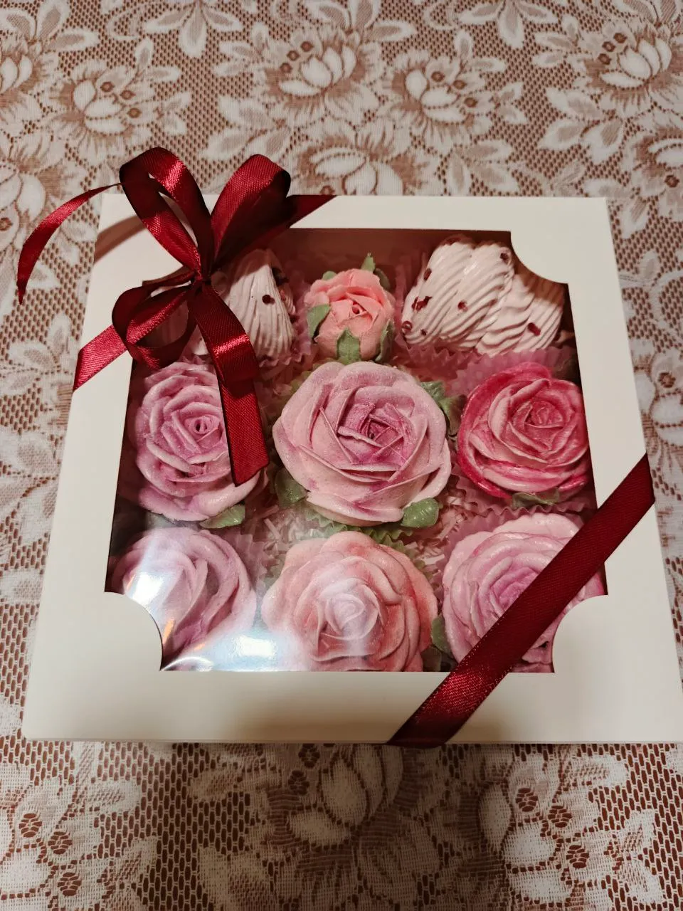 -- Состав -- - яблочное (ягодное) пюре или сок - агар-агар - яичный белок - малое количество сахара -- Вес -- 🌹 1 роза: 38-45 г. 🤍 1 завиток: 28-35 г. -- Стоимость -- Полная коробка 20х20 см.: 25 р.