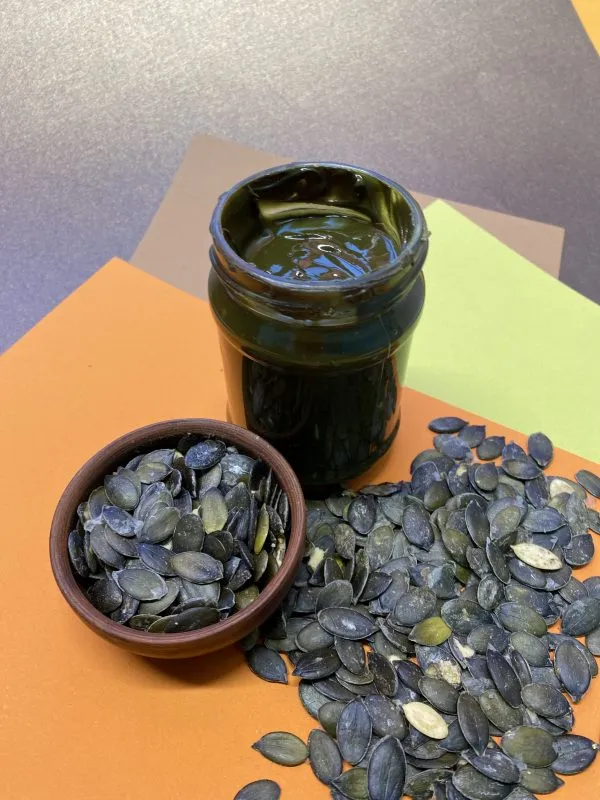 УРБЕЧ ИЗ ТЫКВЕННЫХ СЕМЕЧЕК Приготовлен традиционным способом перетирания семян тыквы на старинных каменных гранитных жерновах до нежнейшей пасты. Этот натуральный продукт обладает уникальными свойствами и великолепным вкусом. ▌ Состав и польза: 🌿 Богат витаминами группы B, витамином E и минеральными веществами (магний, калий, железо, цинк). 💚 Высокое содержание белка способствует поддержанию баланса питательных веществ в организме. 🔥 Цинк укрепляет иммунитет, магний снижает стресс и улучшает сон. 🍀 Насыщенный комплекс полезных элементов обеспечивает энергетическую поддержку организму: Энергетическая ценность: 559 кКал. Белки: 30,2 г (32,8%). Жиры: 49,1 г (73,3%). Углеводы: 4,7 г (3,4%). Этот природный концентрат здоровья включает ценные витамины и минералы: - Витамин B₁: 18,2 % - Холин: 12,6 % - Витамин B₉: 14,5 % - Витамин E: 14,5 % - Витамины B₅ и PP: 15 % и 24,9 % соответственно - Макроэлементы: калий, магний, фосфор, кремний. - Микроэлементы: железо, цинк, марганец, медь, хром, селен, молибден, кобальт. ▌ Условия хранения: - Срок годности закрытого продукта — до 1 года. - Хранится в прохладном месте, защищённом от солнечных лучей. - После открытия банка хранится в холодильнике около 2-х недель. - Перед каждым использованием обязательно перемешать содержимое баночки. Откройте для себя богатство вкуса и пользы натурального урбеча из тыквы!