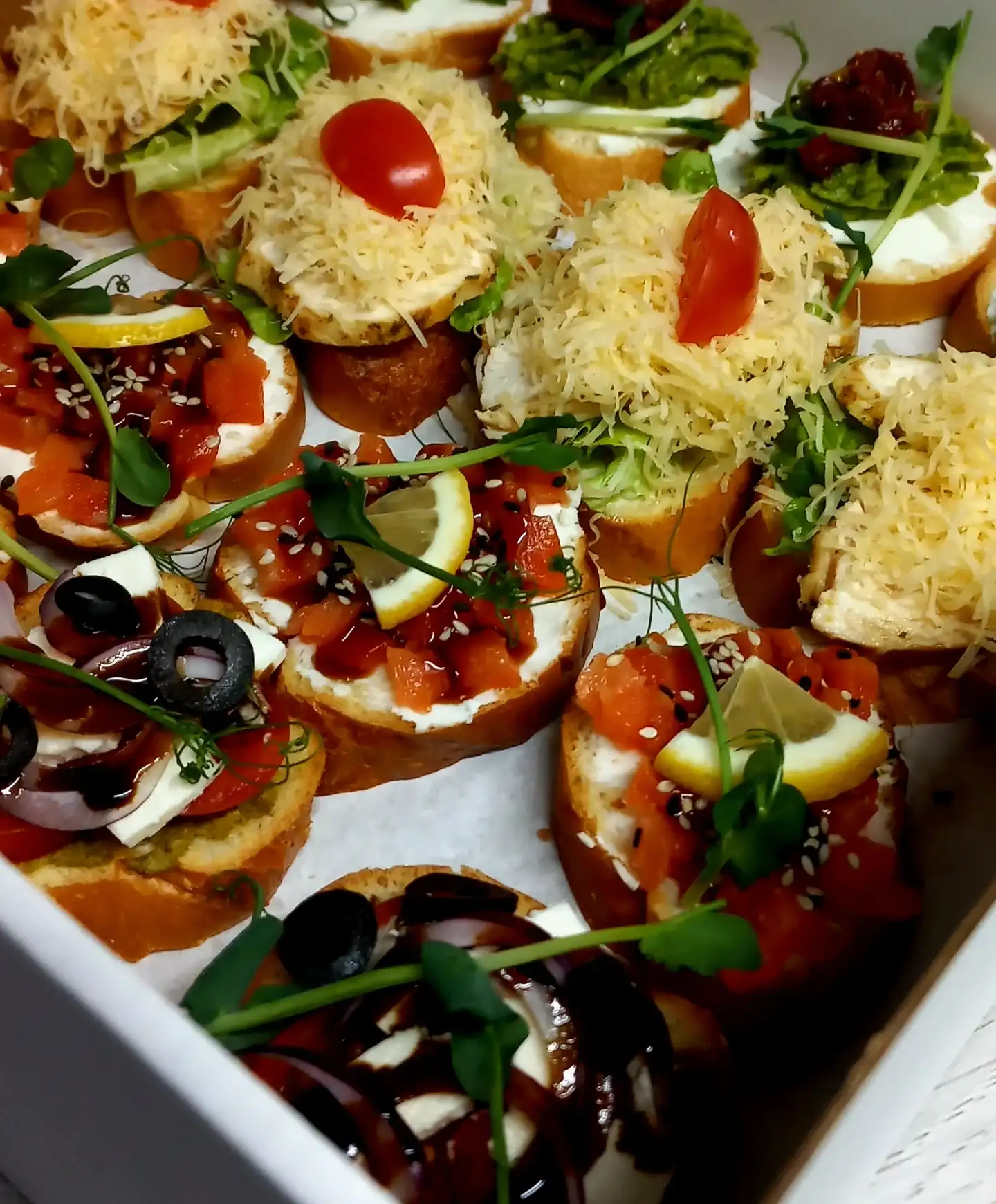 Брускетта «Цезарь», 4 шт. Брускетта «Греческая», 4 шт. Брускетта «Лосось», 4 шт. Брускетта «вяленый томат», 4 шт.