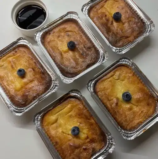 Запеканка из творога — это воздушный и нежный десерт, который идеально подойдет не только для завтрака, но и для обеда и для ужина. В состав этого блюда входит изюм и курага, но их, по желанию, можно заменить любыми другими наполнителями: свежие фрукты или ягоды, орехи. Благодаря правильному соотношению ингредиентов это блюдо получается мягким, легким и тающем во рту. Запеканка расфасована по 200 грамм в формы из фольги с крышкой.