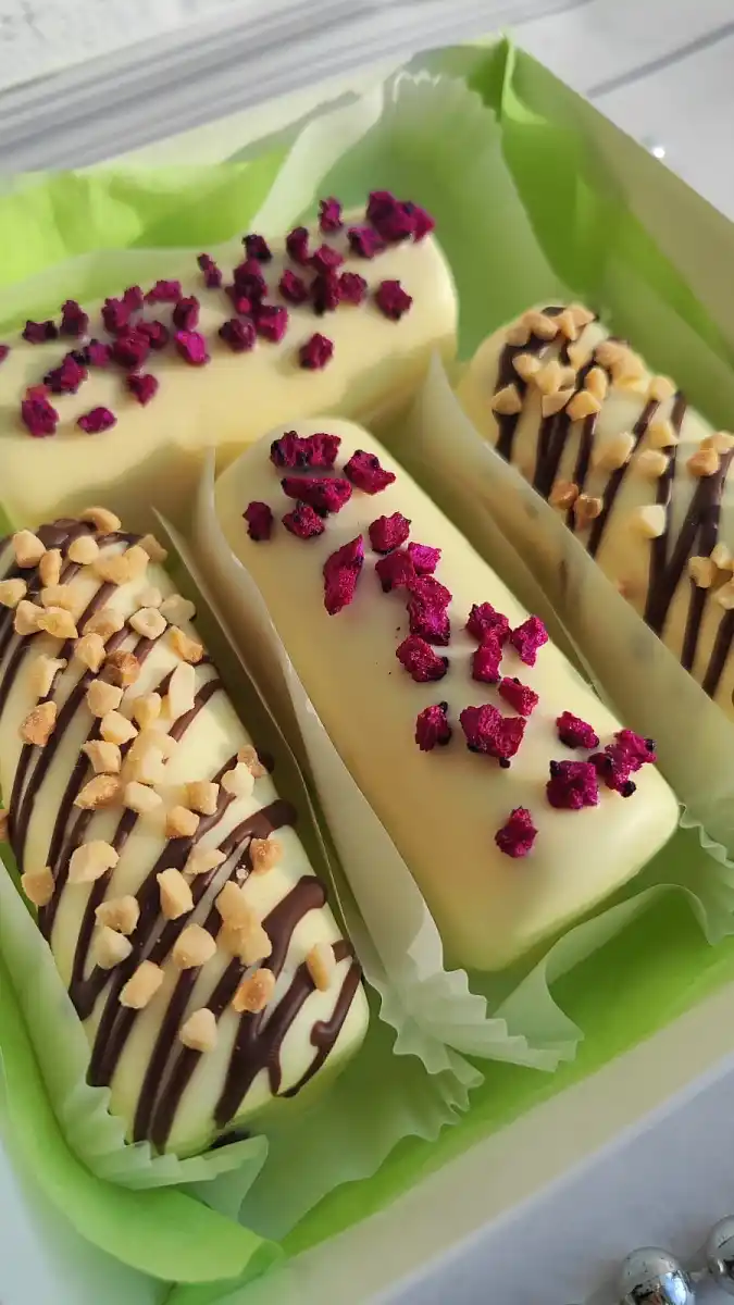 Зефир без сахара в белом шоколаде с посылкой арахис и питахайя