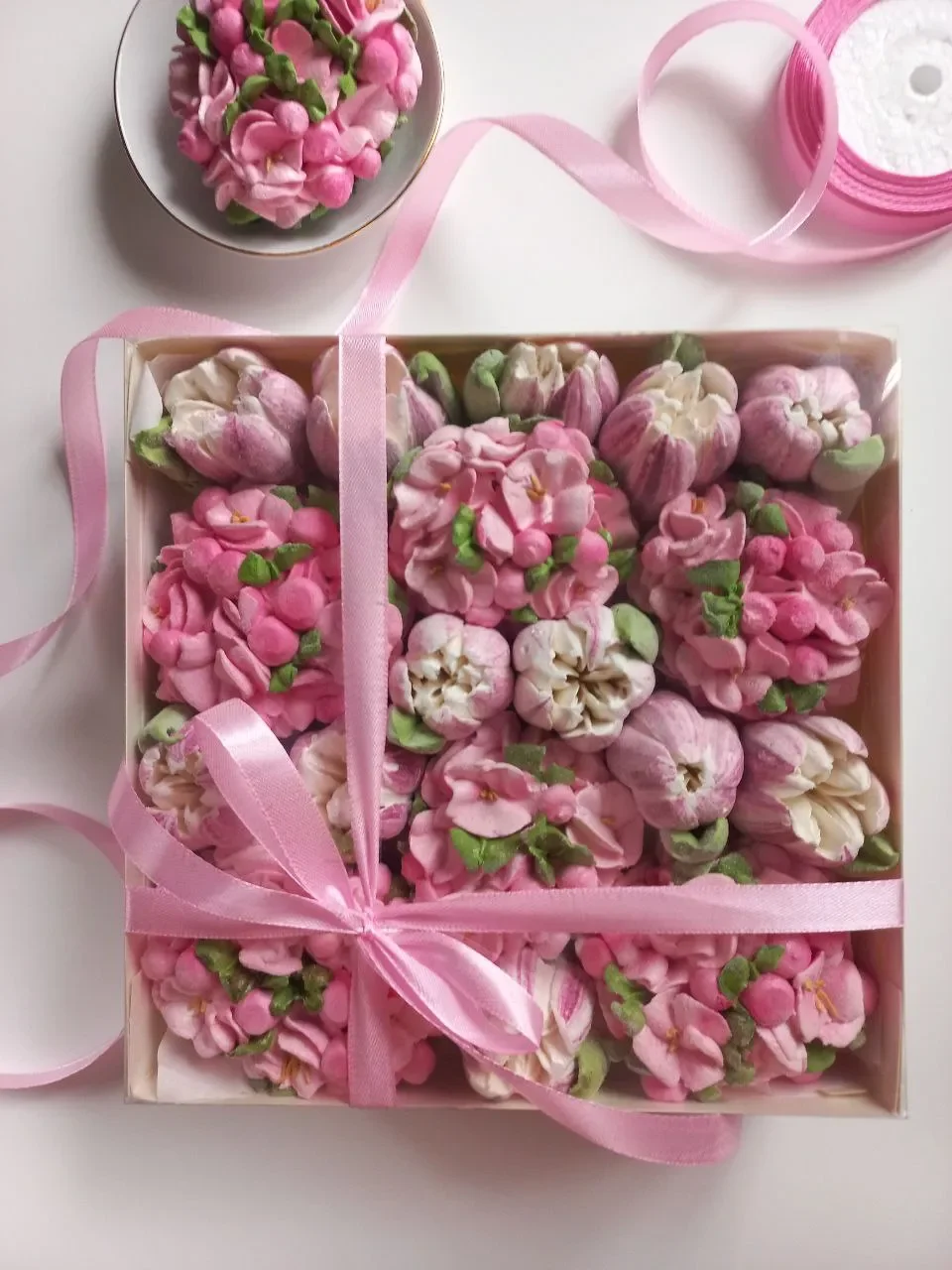 Набор нежнейшего воздушного зефира ручной работы из яблочного и ягодного пюре собственного приготовления. Подходит и для подарка и для домашнего чаепития. Нижний слой в коробочке - завитки, верхний слой - цветы. Состав: яблочное (ягодное) пюре, белок куриного яйца, сахар, агар-агар, вода, пищевые красители. Цветы из яблочного пюре. Для завитков доступны вкусы: - чёрная и красная смородина, - малина, - клубника, - мята, - вишня, - черника с лавандой, - яблоко с корицей. Коробочка размером 20х20х7 см. Срок изготовления 3 дня.