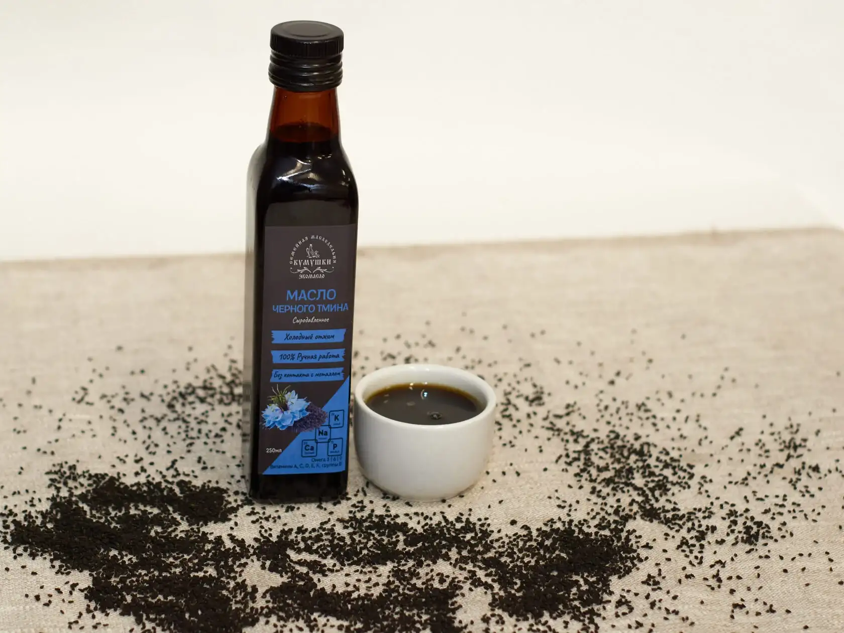 Полезные свойства: Жмых черного тмина — это настоящее природное лекарство, которое заменит вам целую аптечку! Натуральная добавка к пище, которая позволит вам обойти простуды и вирусы. Он обладает жаропонижающим, противовирусным, отхаркивающим и противовоспалительным действием. Мощный помощник при бронхитах, воспалении легких, простудах. Жмых черного тмина содержит целый ряд микро- и макроэлементов: калий, фосфор, кальций, цинк, железо, магний. Как применять? перемолоть жмых тмина, добавить мед по вкусу и кушать по 1 ч.л. 1-2 раза в день для укрепления иммунитета; цельным или смолотым добавлять в салаты, супы и выпечку; добавлять в тесто, посыпать запечённые овощи и мясо; тминный чай: 1 ст.л. жмыха залить стаканом горячей воды, перемешать, дать настояться 5 минут, чтобы семена осели на дно чашки. Добавить 1 ложку меда. Такой чай выводит желчные камни, чистит печень. Уменьшает уровень сахара в крови и защищает от диабета. Противопоказания: беременность; пересаженные органы; осторожно при больших камнях в желчном; осторожно с препаратами, снижающими давление и сахар.